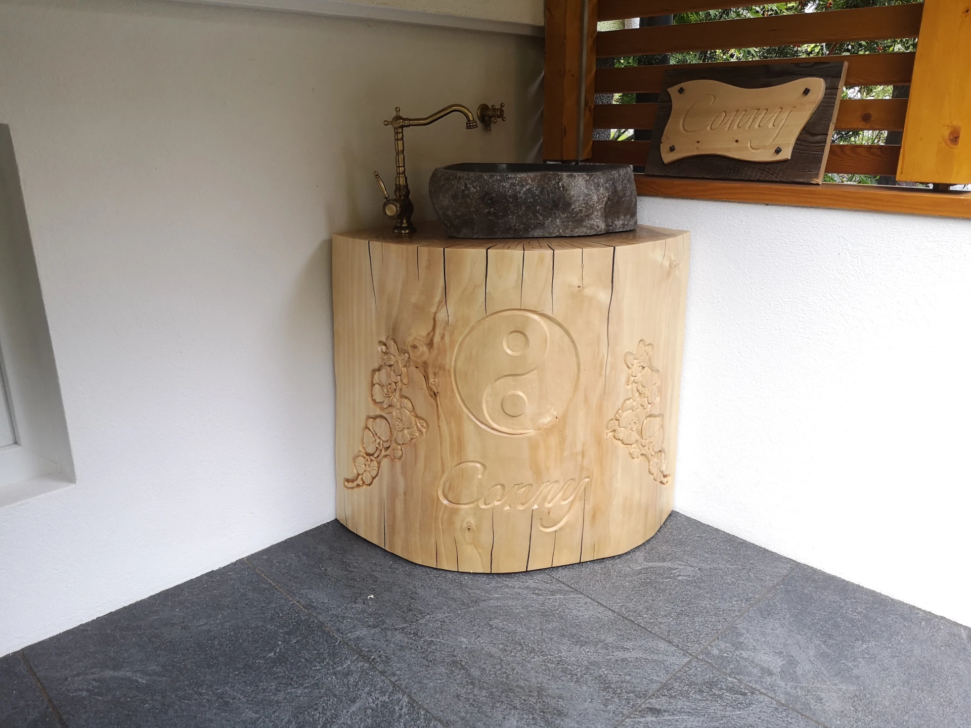 Motorsägenarbeit Hahn Höhe ca. 65cm